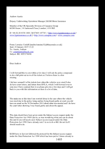 Data Protection Act 1998 I put in, so was wondering what you can do about