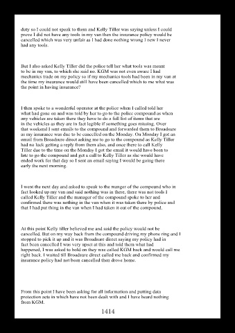 duty so I could not speak to them and Kelly Tiller was saying unless I could