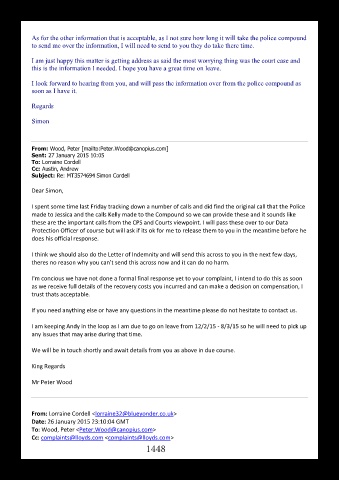 I look forward to hearing from you, and will pass the information over from the police compound as