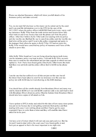 14/11/2013 where the police officer told KGM I had tools in my van to void