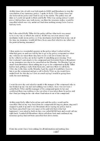 cancelation of my insurance policy, I spoke to Kelly Tiller many times but