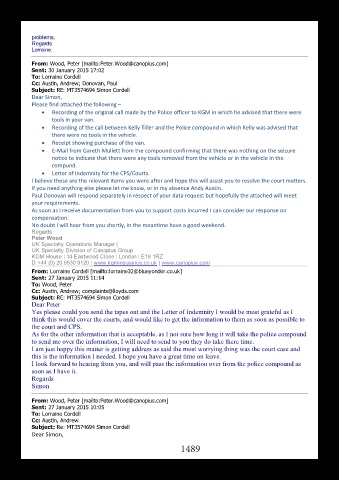 E‐Mail from Gareth Mullett from the compound confirming that there was nothing on the seizure