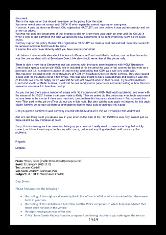 This has been discussed with the underwriters at KGM by Broadsure Direct re Martin Jenkins. This also caused