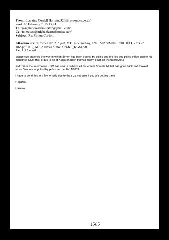 please see attached the way in which Simon has been treated by police and the lies one police office said to his