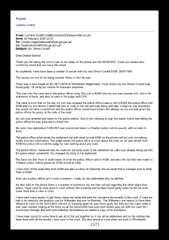 There was a case heard on the 26/11/2014 at Wimbledon Magistrates' Court where my son Simon Cordell was