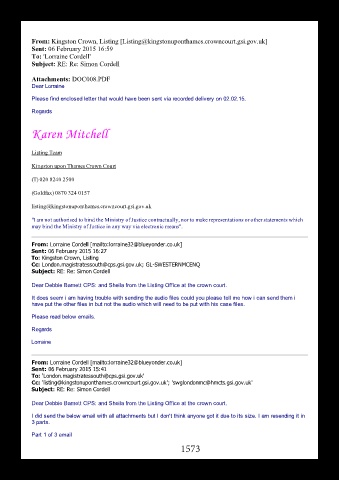 Dear Debbie Barnett CPS: and Sheila from the Listing Office at the crown court.