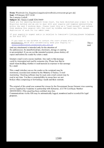 Thank you for emailing Woolwich Crown Court. You have directed your email to the
