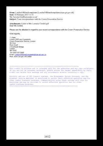 Please see the attached in regard to your recent correspondence with the Crown Prosecution Service.
