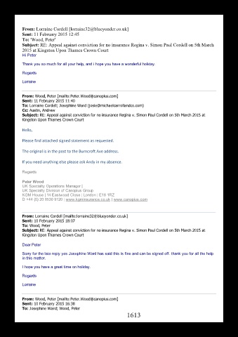 Subject: RE: Appeal against conviction for no insurance Regina v. Simon Paul Cordell on 5th March