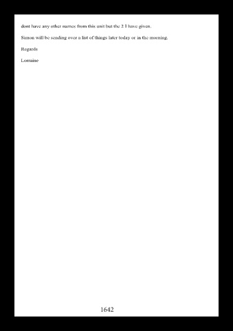 dont have any other names from this unit but the 2 I have given. Simon will be sending over a list of things later today or in the morning. Regards Lorraine 1642