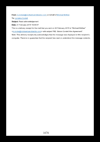 This is a delivery receipt for the mail that you sent on 20 February 2015 to "Micheal McKee"