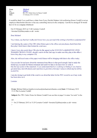It would be ideal if we could have a letter from Every Decibel Matters Ltd confirming Simon Cordell is not an
