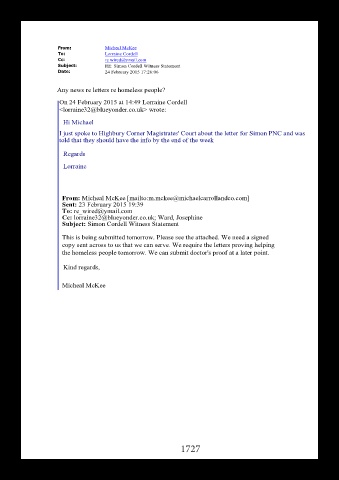 Subject: RE: Simon Cordell Witness Statement