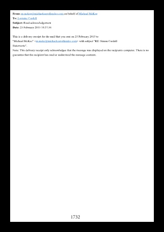 This is a delivery receipt for the mail that you sent on 25 February 2015 to