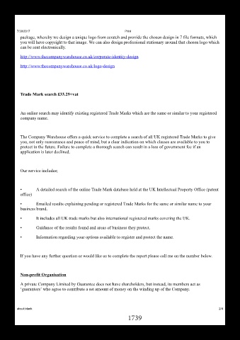 • Emailed results explaining pending or registered Trade Marks for the same or similar name to your