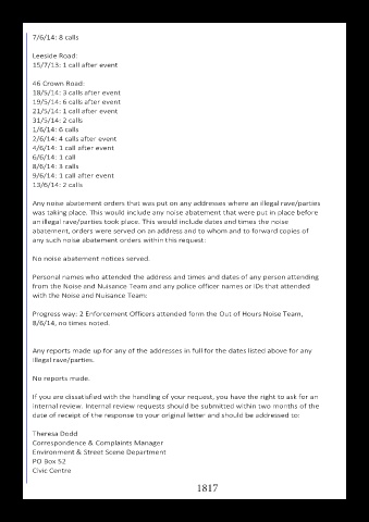 from the Noise and Nuisance Team and any police officer names or IDs that attended