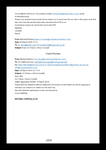 Please find the attached witness statement of Lorraine Cordell which we will be applying to
