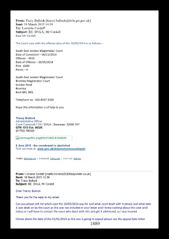 The Court case with the offence date of the 20/05/2014 is as follows :‐
