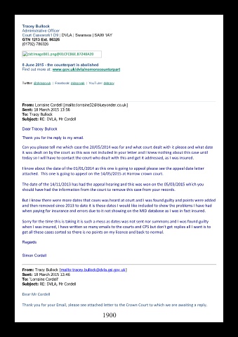 Sorry for the time this is taking it is such a mess as dates was not sent nor summons and I was found guilty