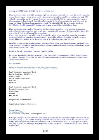 For the past 4 weeks I been dealing with a lady called Tracey Bullock Administrative Officer, Court Casework1