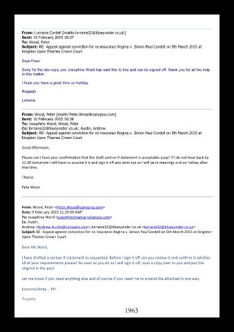 Subject: RE: Appeal against conviction for no insurance Regina v. Simon Paul Cordell on 5th March 2015 at