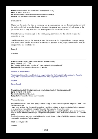 I have been advised that if an email is received from Simon stating he gives permission for the transcript