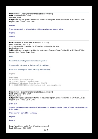Subject: RE: Appeal against conviction for no insurance Regina v. Simon Paul Cordell on 5th March 2015 at