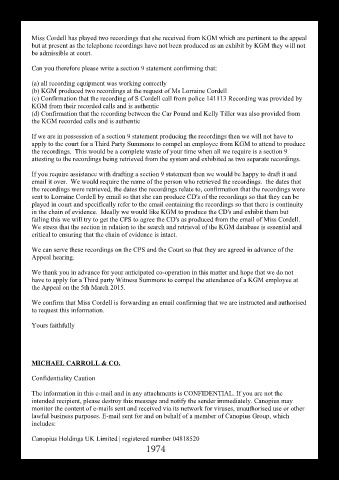 but at present as the telephone recordings have not been produced as an exhibit by KGM they will not