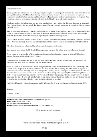complaints as to what the neighbours was doing to Mr Cordell, I have also requested all my phone records as