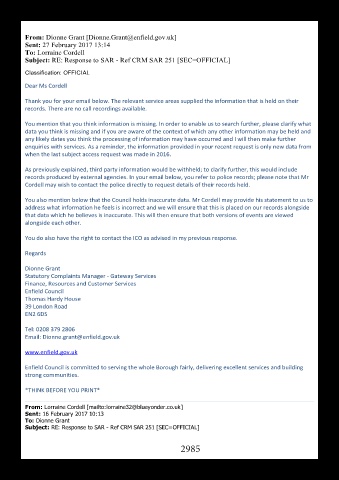 records produced by external agencies. In your email below, you refer to police records; please note that Mr