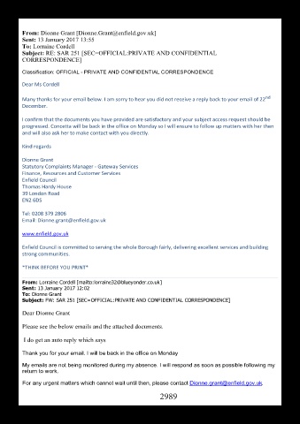 For any urgent matters which cannot wait until then, please contact Dionne.grant@enfield.gov.uk.