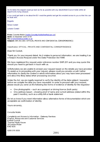 please would you send us the following two forms of evidence of identity for the requestor: