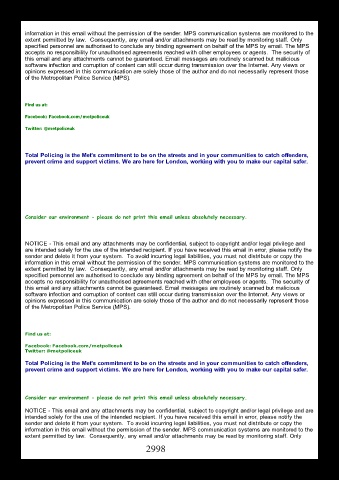 extent permitted by law. Consequently, any email and/or attachments may be read by monitoring staff. Only