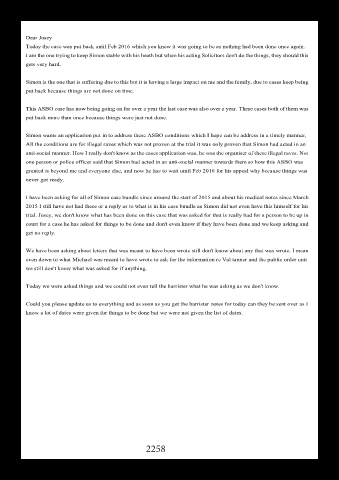 I am the one trying to keep Simon stable with his heath but when his acting Solicitors don't do the things, they should this