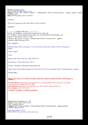 Subject: RE: Simon Cordell v. Metropolitan Police Commissioner - appeal