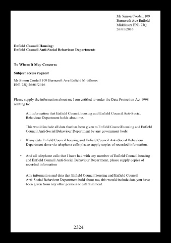 • And all telephone calls that I have had with any member of Enfield Council housing