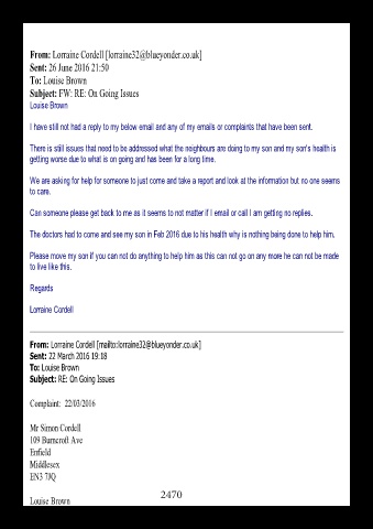There is still issues that need to be addressed what the neighbours are doing to my son and my son's health is