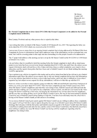 about Mr Simon Cordell’s neighbours and what they were doing to him, Enfield Council and ASB unit took the