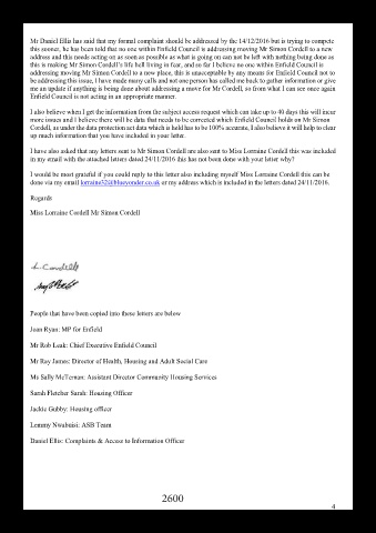 more issues and I believe there will be data that needs to be corrected which Enfield Council holds on Mr Simon