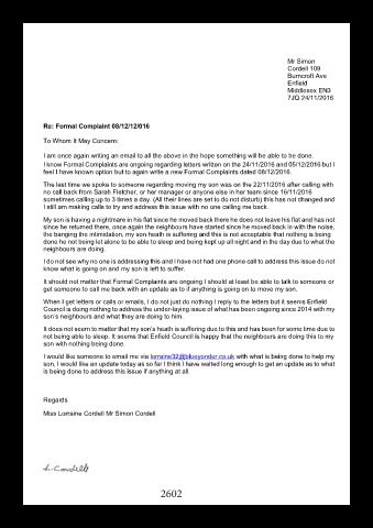 I know Formal Complaints are ongoing regarding letters written on the 24/11/2016 and 05/12/2016 but I