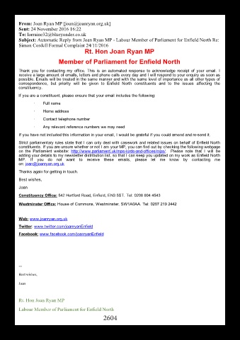 Subject: Automatic Reply from Joan Ryan MP Labour Member of Parliament for Enfield North Re: