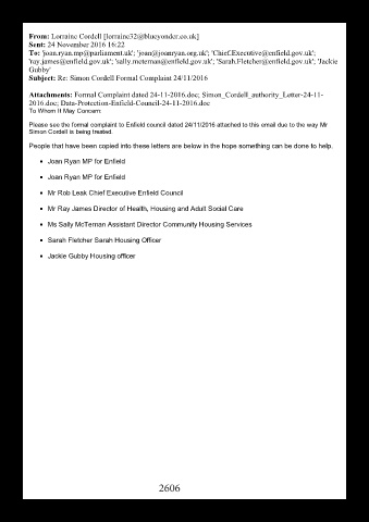 Please see the formal complaint to Enfield council dated 24/11/2016 attached to this email due to the way Mr