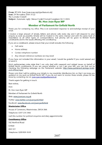 Subject: Automatic reply: Simon Cordell Formal Complaint 24/11/2016