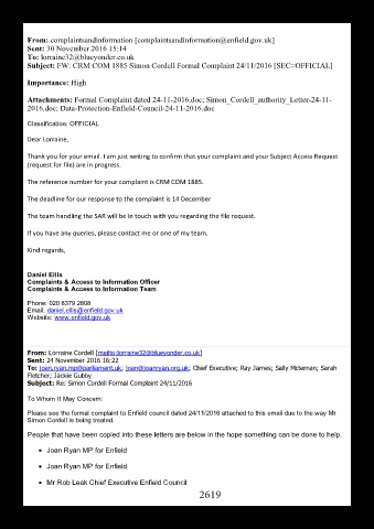Please see the formal complaint to Enfield council dated 24/11/2016 attached to this email due to the way Mr