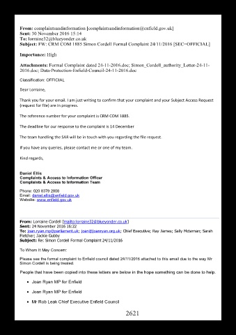Please see the formal complaint to Enfield council dated 24/11/2016 attached to this email due to the way Mr