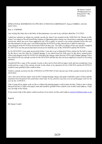 I asked my solicitors to obtain my custody records for when I was arrested on the 14/08/2016 for Threats to kill,