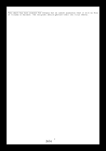 ________________________________ This email has been scanned for viruses but we cannot guarantee that it will be free of viruses or malware. The recipient should perform their own virus checks. 2 2654