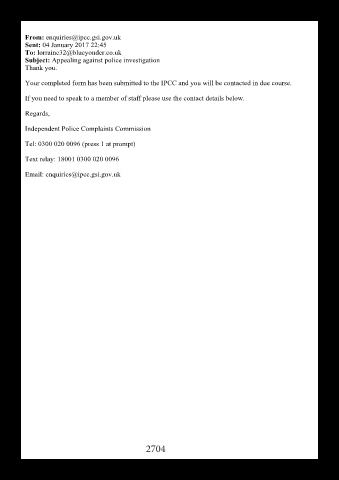 Your completed form has been submitted to the IPCC and you will be contacted in due course.
