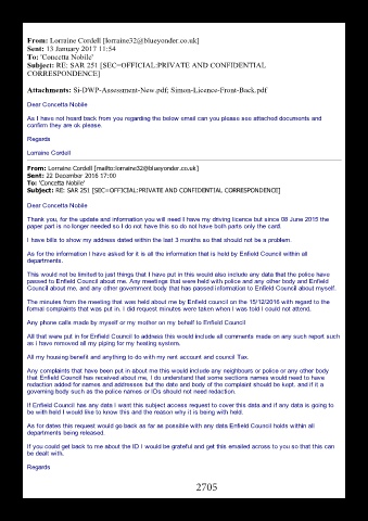 that Enfield Council has received about me, I do understand that some sections names would need to have