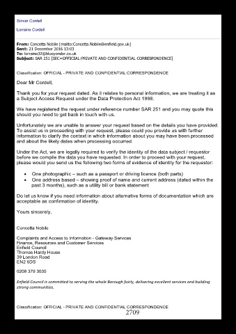 Under the Act, we are legally required to verify the identity of the data subject / requestor